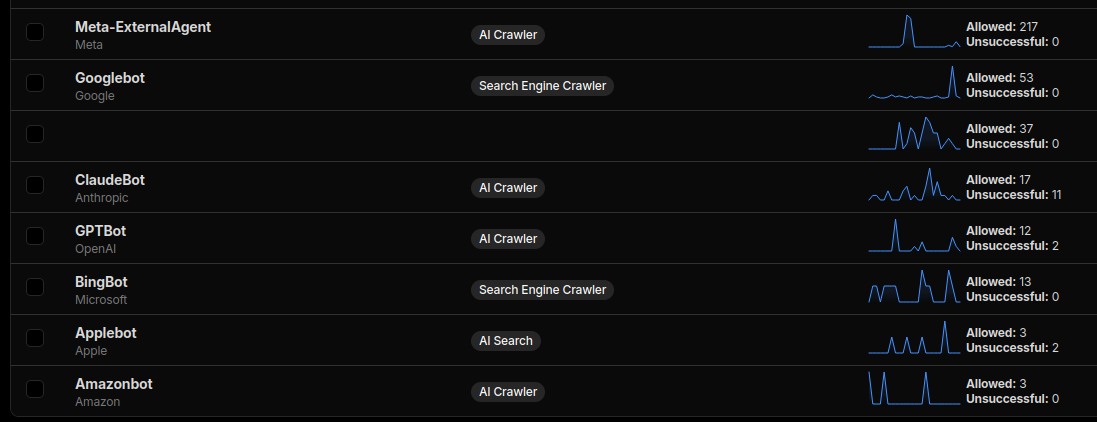 Различные парсеры и их обращения к нашему сервису. Это только те, что идентифицируются Cloudflare.
